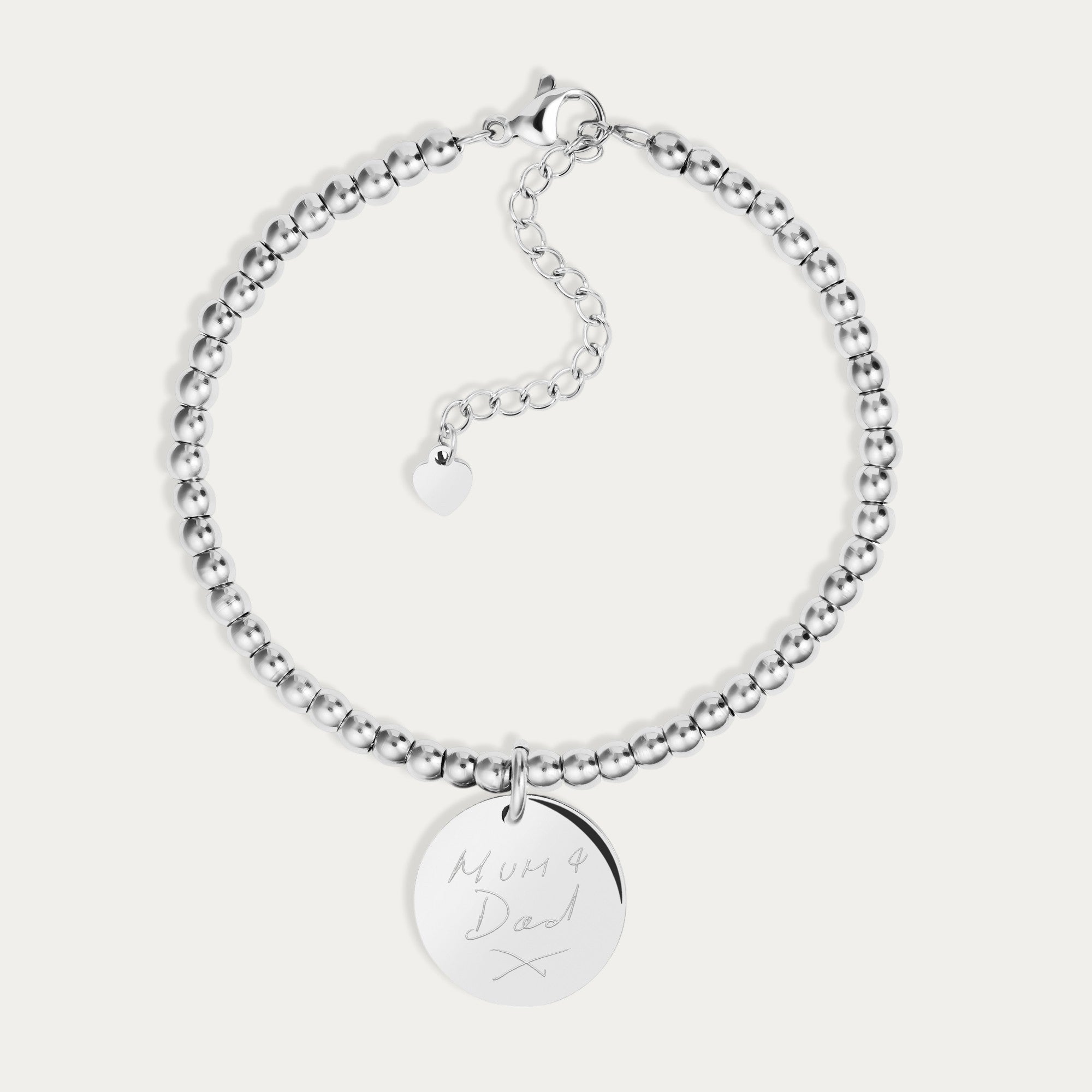 Amelia Disc Silver Actual Handwriting Bead Bracelet