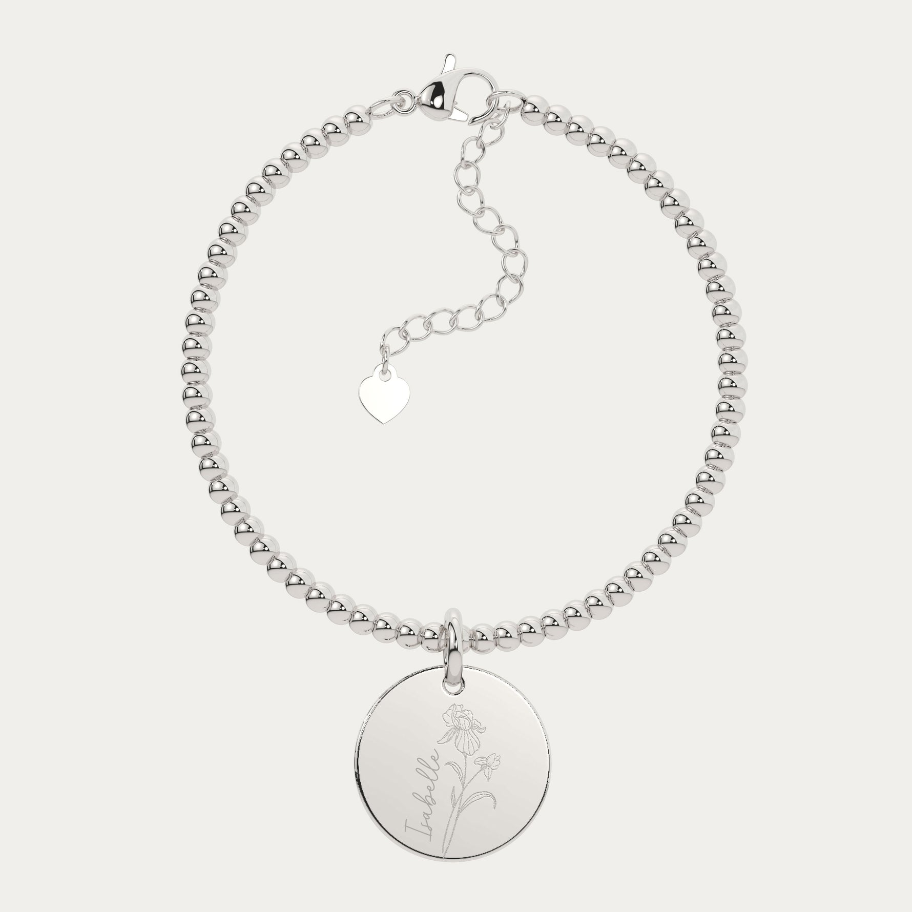 Amelia Disc Silver Birth Flower Bead Bracelet