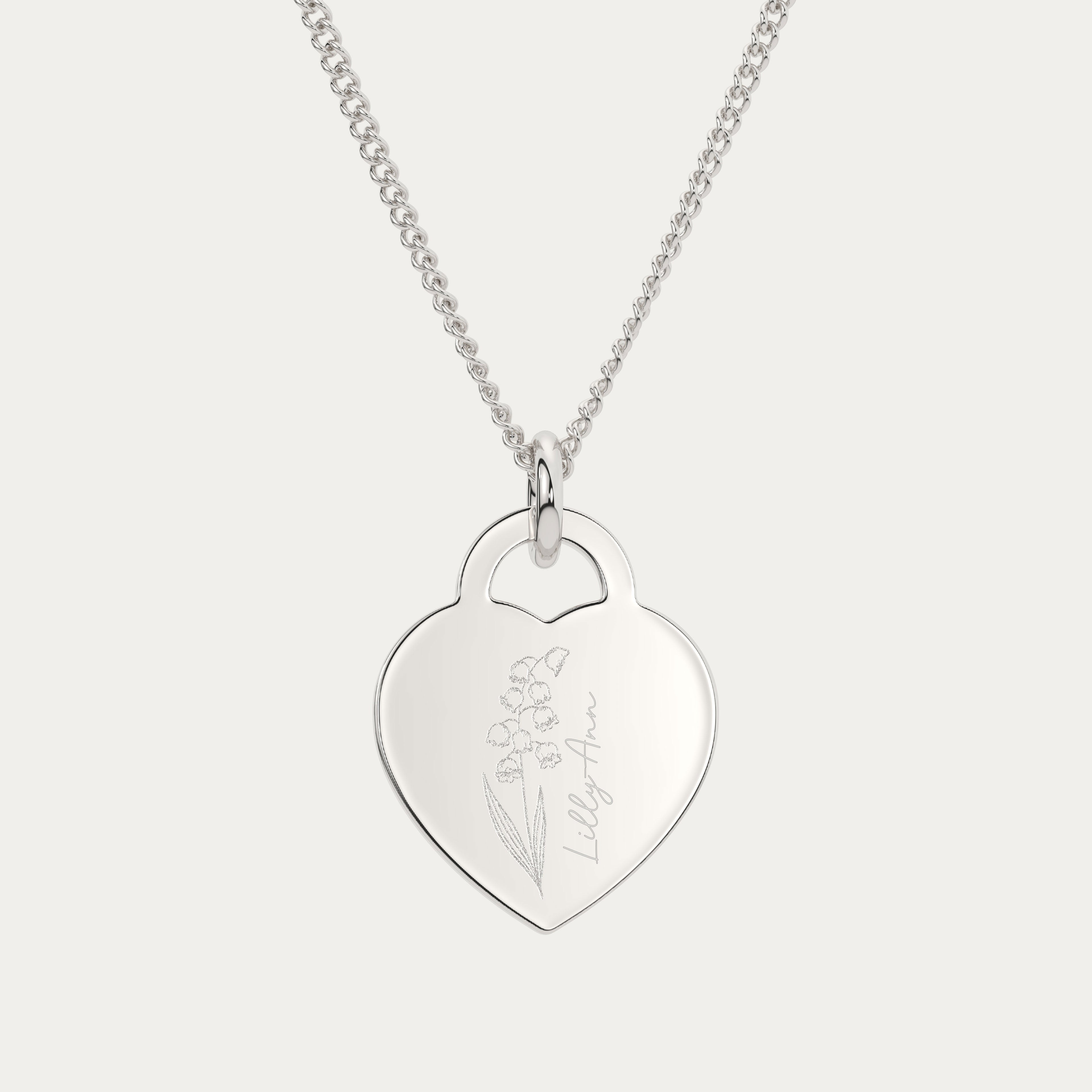 Gorgeous and unique, this Lucy Heart Birth Flower Necklace celebrates the beauty of birth flowers. Crafted from hypoallergenic Stainless Steel & 18k Gold, this necklace makes a perfect gift for anyone. Personalised & engraved with your birth flower & name.