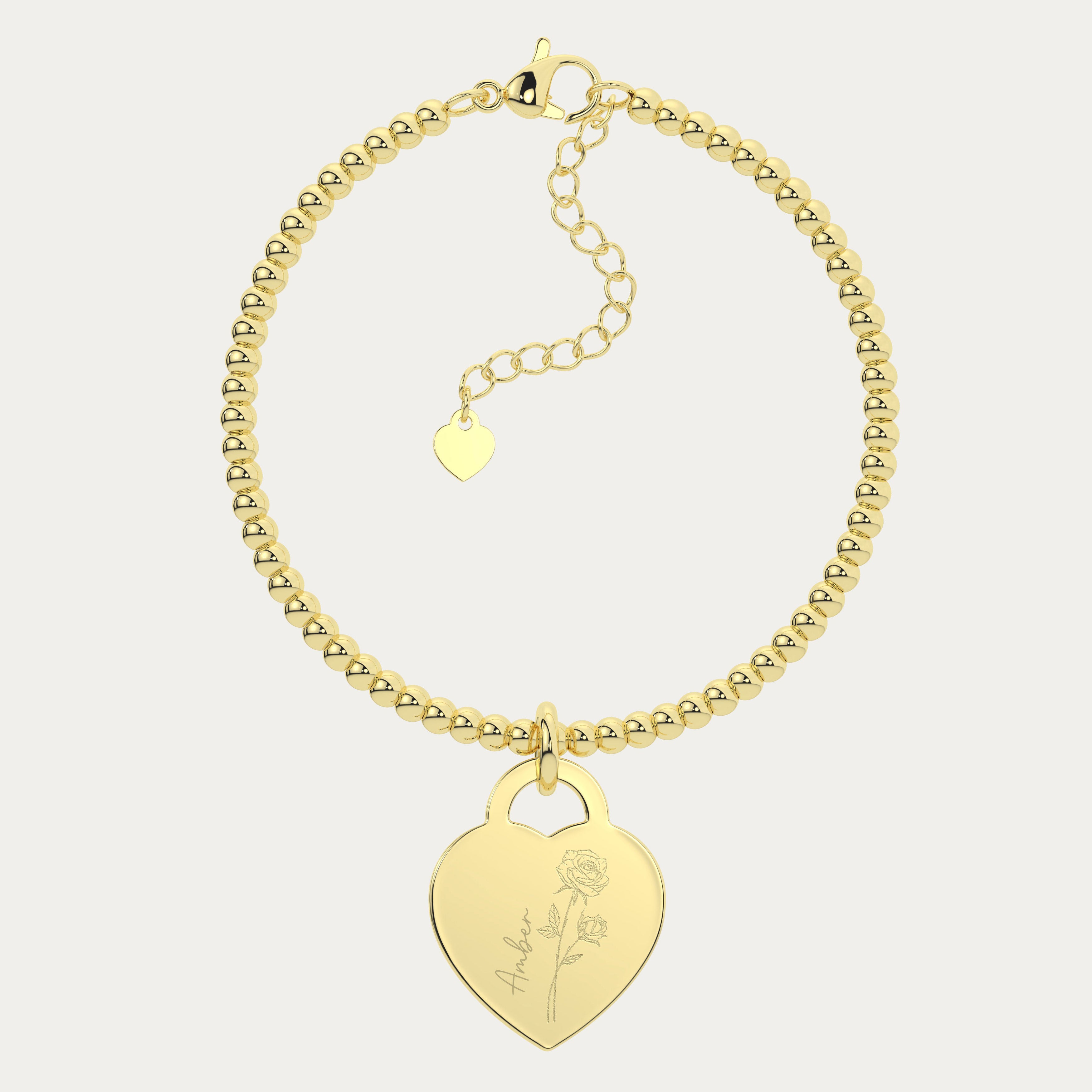 Lucy Heart Gold Birth Flower Bead Bracelet