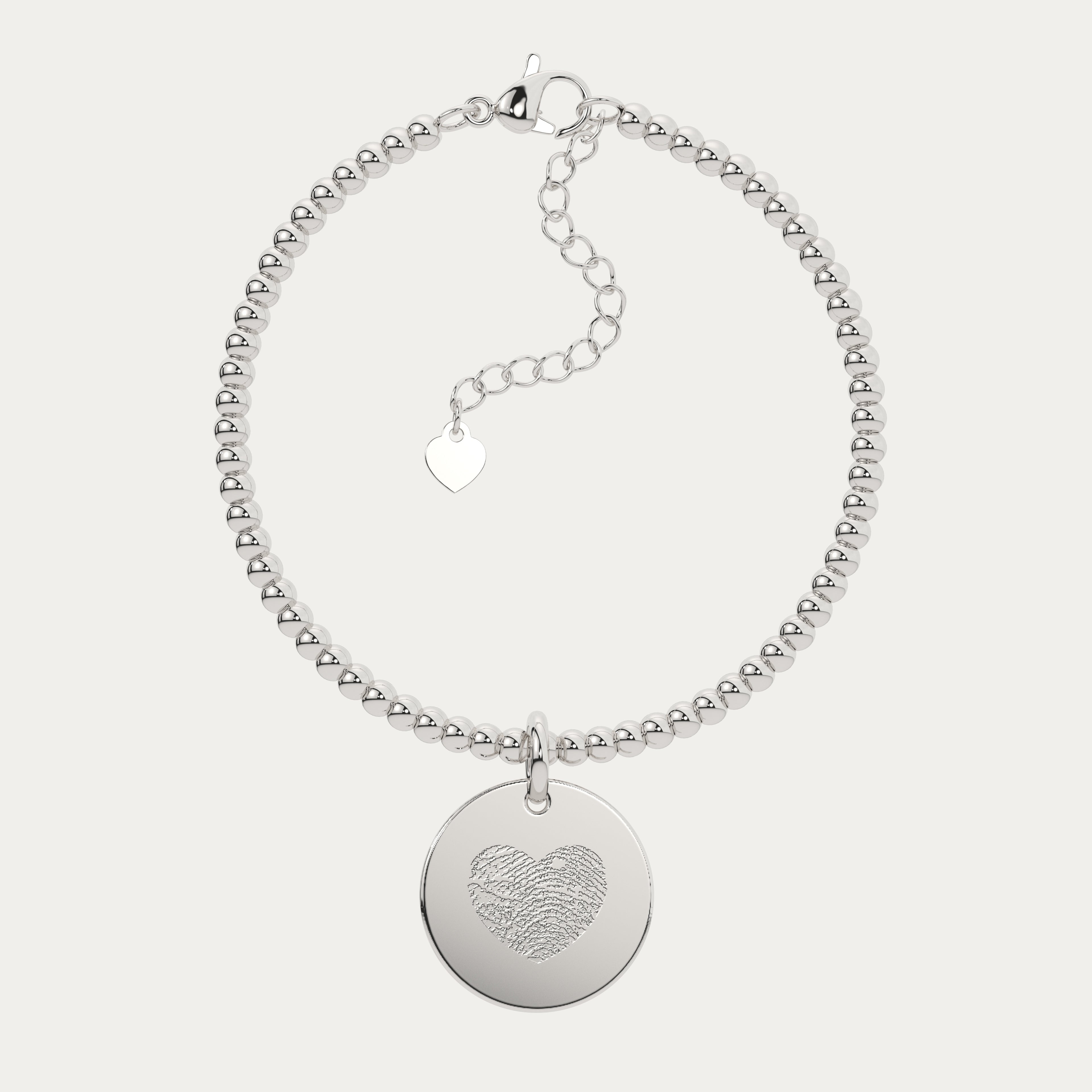 Amelia Disc Silver Fingerprint Bead Bracelet