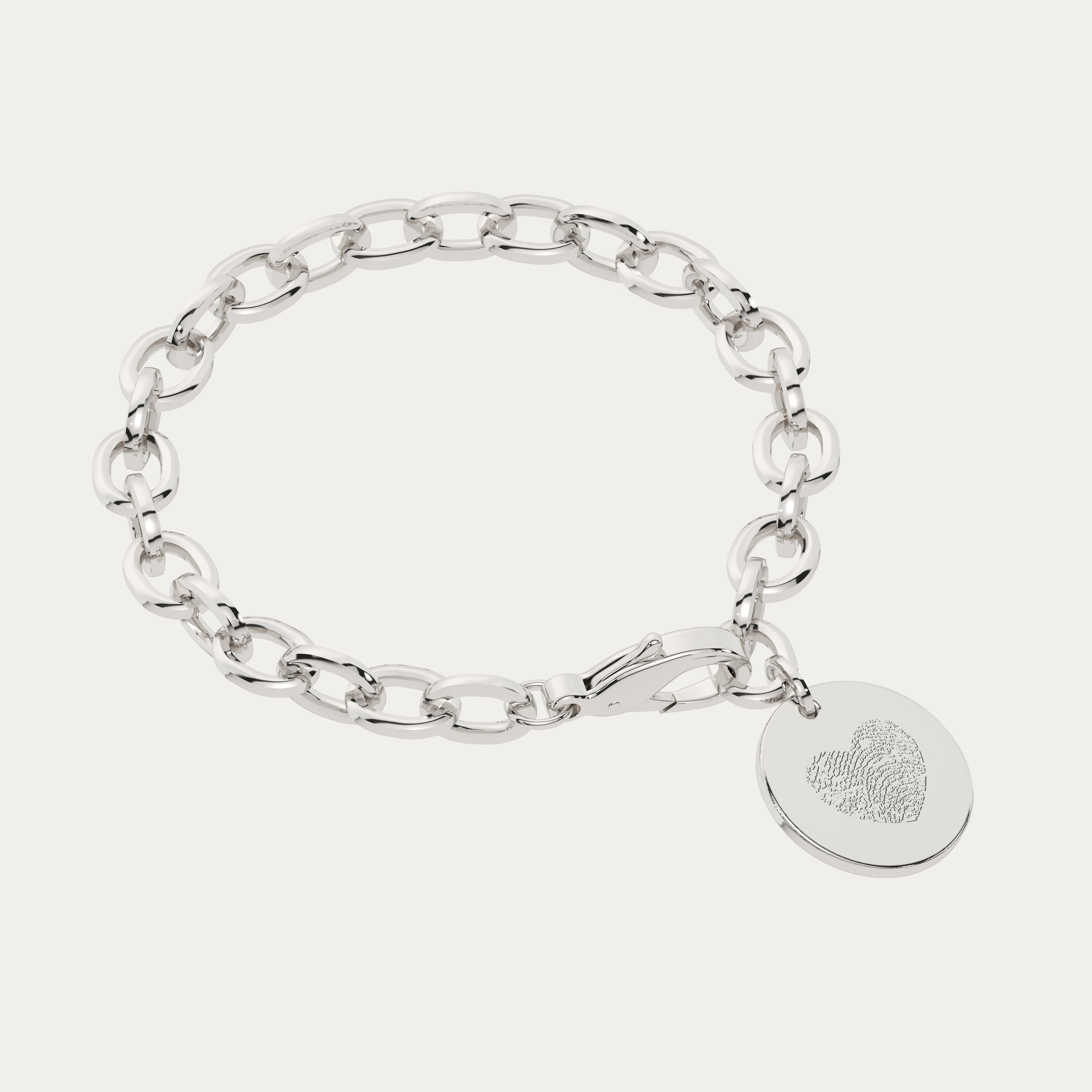 Hold them close, always. Our Fingerprint Engraved Disc Bracelet is a deeply personal keepsake that captures the unique touch of someone special. Each bracelet is precisely engraved with a real fingerprint, creating a one-of-a-kind piece that embodies presence, memory, and love. Whether it's a gift to commemorate a loved one, a memorial, or a meaningful gesture for a partner or parent, this necklace transforms a simple impression into a timeless treasure. Made from waterproof, hypoallergenic materials, it's designed for everyday wear and lasting sentiment.