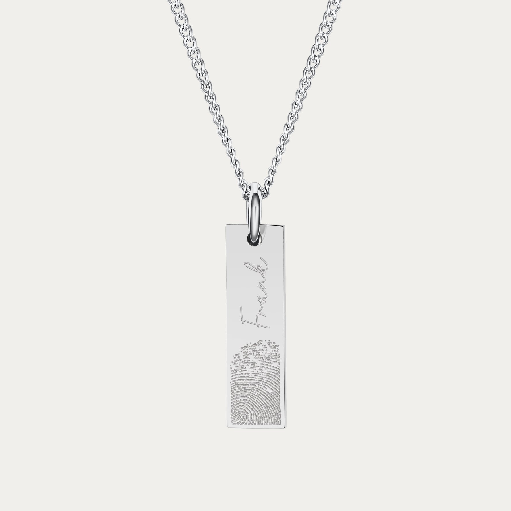 Hold them close, always. Our Fingerprint Engraved Rectangle Necklace is a deeply personal keepsake that captures the unique touch of someone special. Each pendant is precisely engraved with a real fingerprint, creating a one-of-a-kind piece that embodies presence, memory, and love. Whether it's a gift to commemorate a loved one, a memorial, or a meaningful gesture for a partner or parent, this necklace transforms a simple impression into a timeless treasure. Made from waterproof, hypoallergenic materials, it's designed for everyday wear and lasting sentiment.