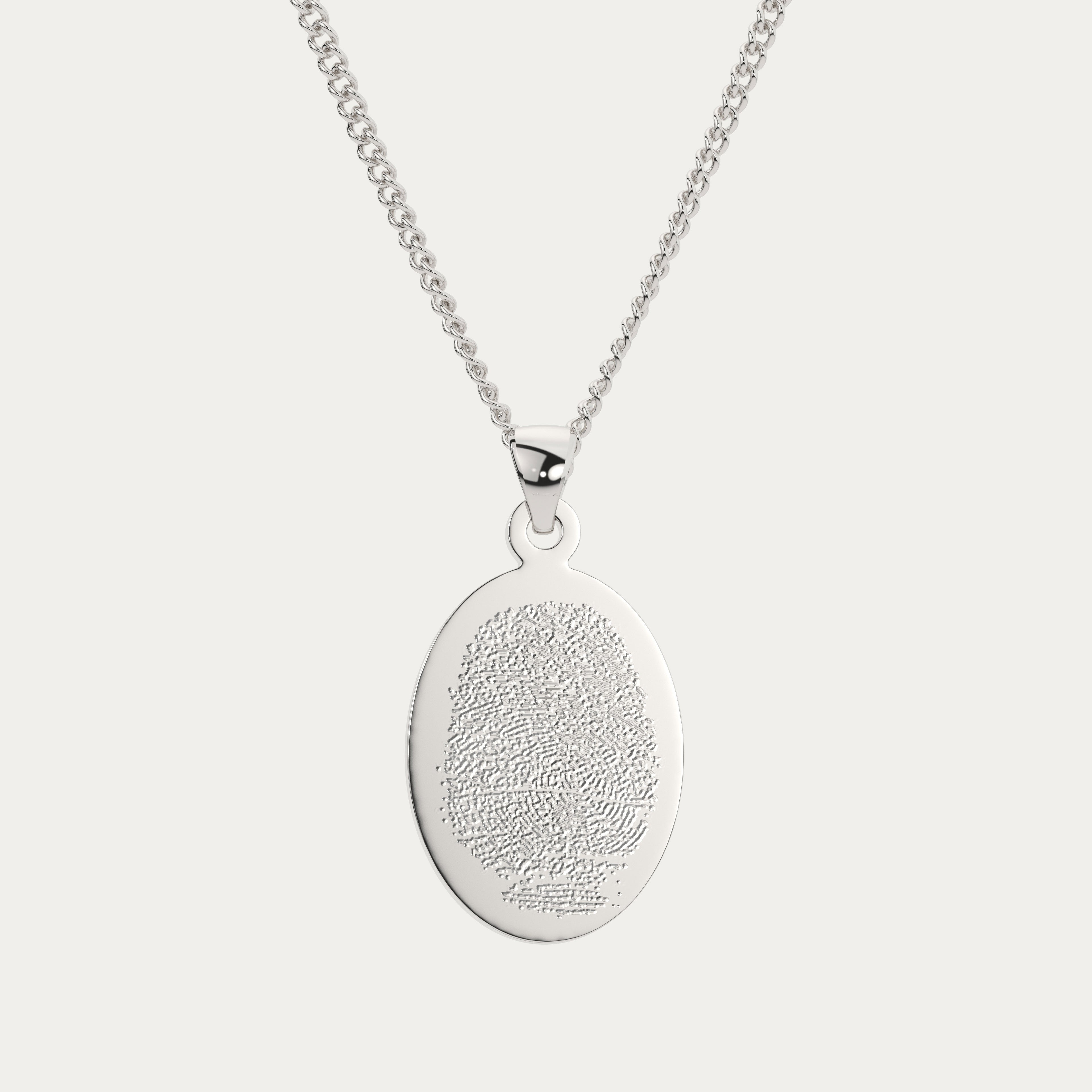 Hold them close, always. Our Fingerprint Engraved Oval Necklace is a deeply personal keepsake that captures the unique touch of someone special. Each pendant is precisely engraved with a real fingerprint, creating a one-of-a-kind piece that embodies presence, memory, and love. Whether it's a gift to commemorate a loved one, a memorial, or a meaningful gesture for a partner or parent, this necklace transforms a simple impression into a timeless treasure. Made from waterproof, hypoallergenic materials, it's designed for everyday wear and lasting sentiment.