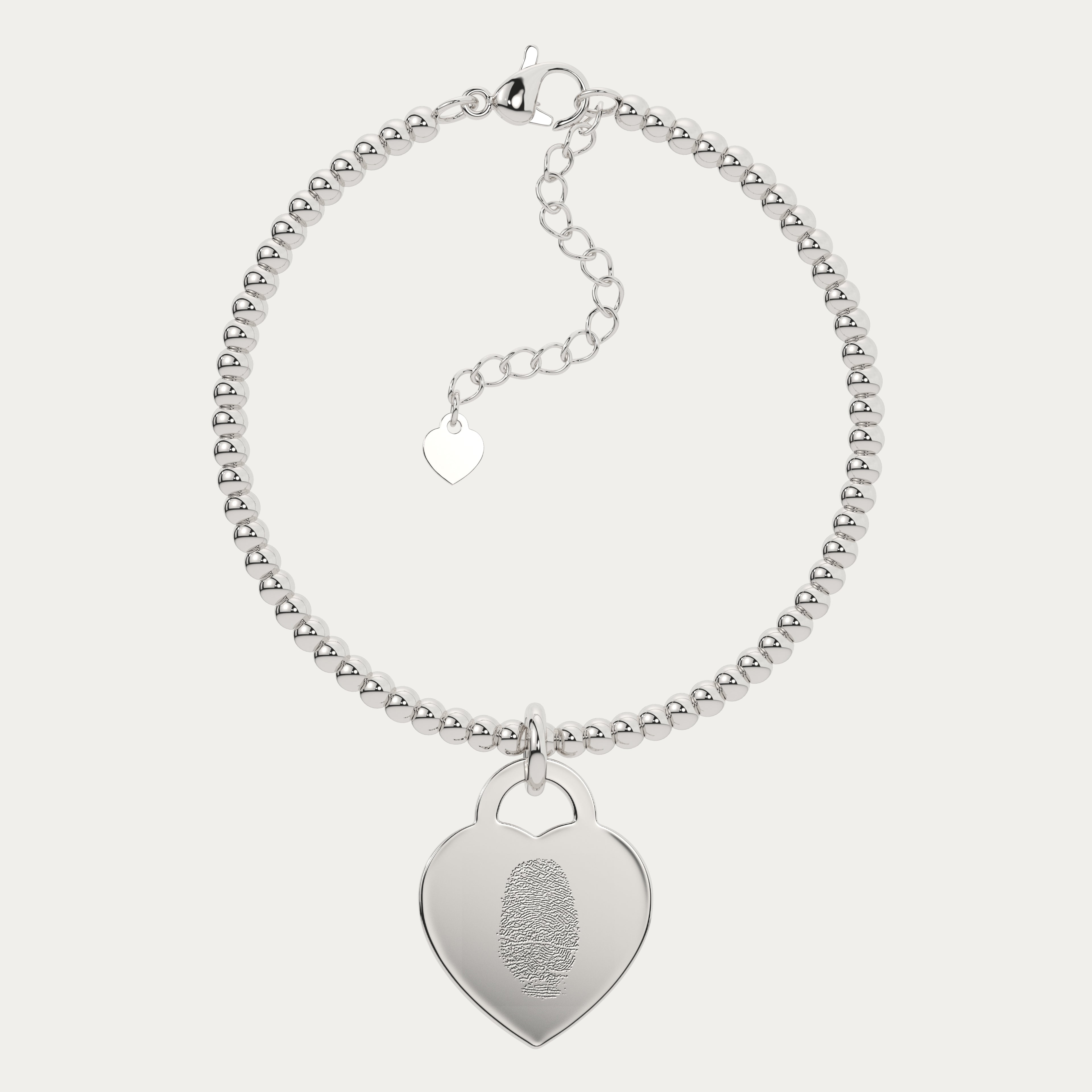 Lucy Heart Silver Fingerprint Bead Bracelet