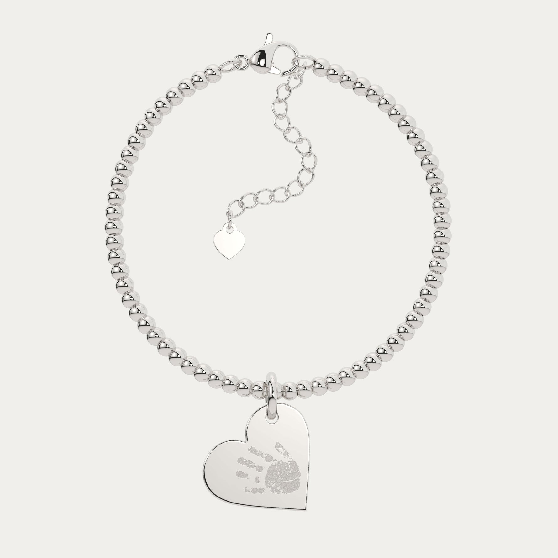 Florence Heart Silver Handprint / Footprint Bead Bracelet