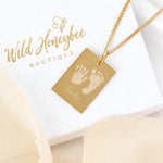 Jessica Rectangle Gold Handprint / Footprint Necklace