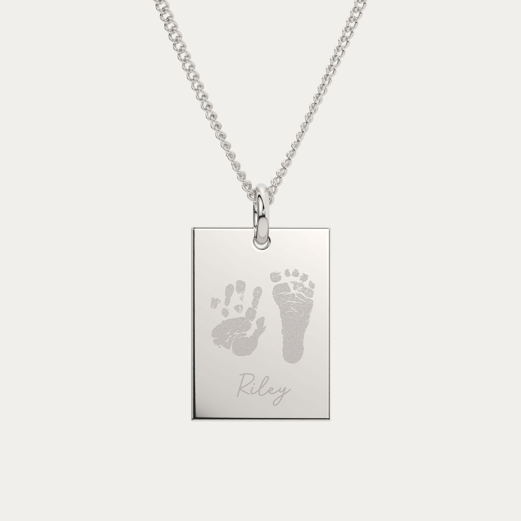 Jessica Rectangle Silver Handprint / Footprint Necklace
