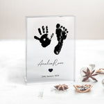A beautiful free standing acrylic block personalised with the hand / foot print of a loved one. This block can be stood on any flat surface and makes for a perfect way to preserve your child's hand / footprints.