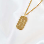 Capture a treasured memory with our Handwriting Engraved Tag Necklace — A timeless keepsake designed to hold a personal message close to your heart. Each pendant is carefully engraved with the actual handwriting of your loved one, making it a truly unique and meaningful piece. Whether it's a signature, a special note, or a simple "I love you," this necklace preserves the emotion behind every word. Thoughtfully crafted with waterproof and hypoallergenic materials, it is perfect for birthdays, anniversaries, memorial gifts, or special occasions.