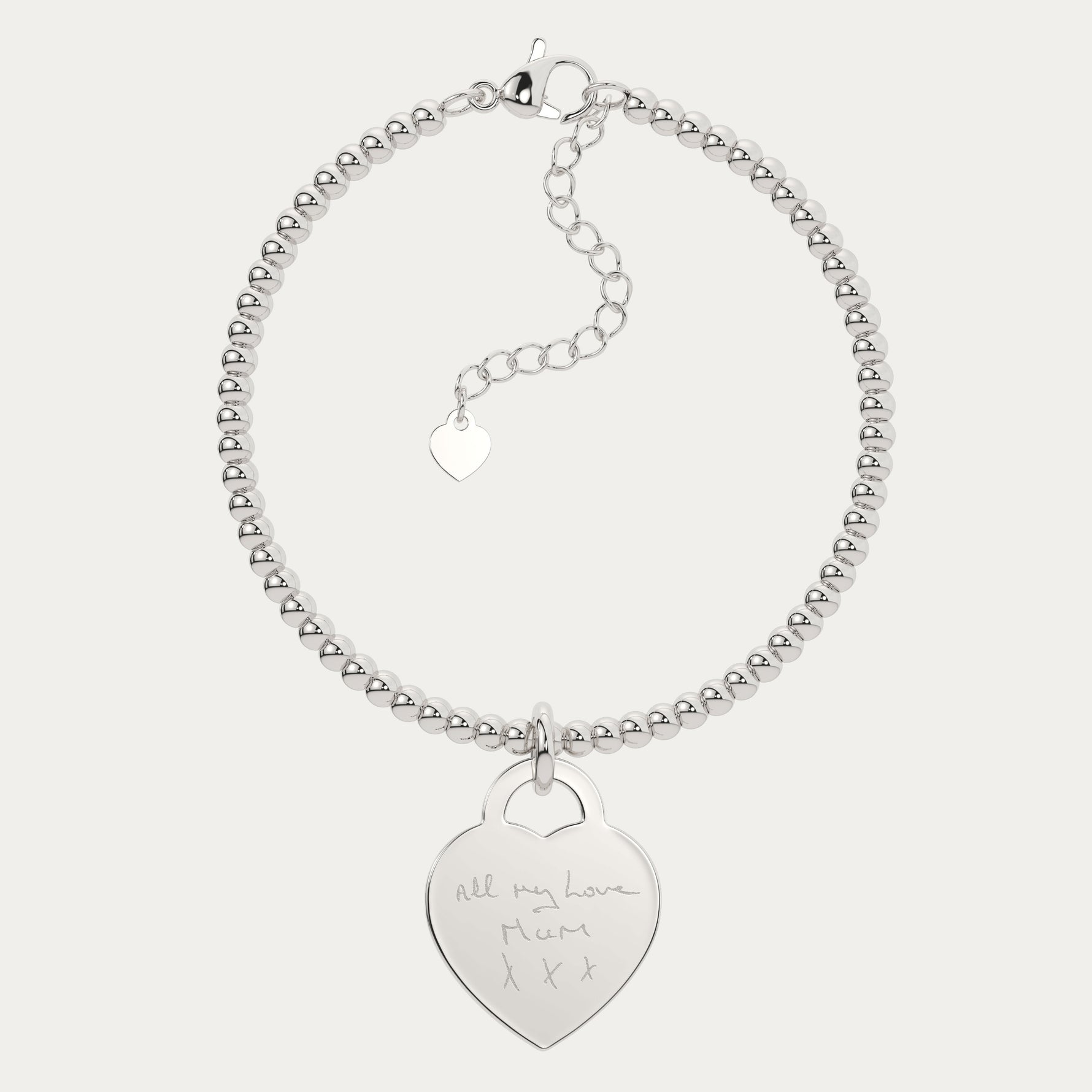 Lucy Heart Silver Actual Handwriting Bead Bracelet