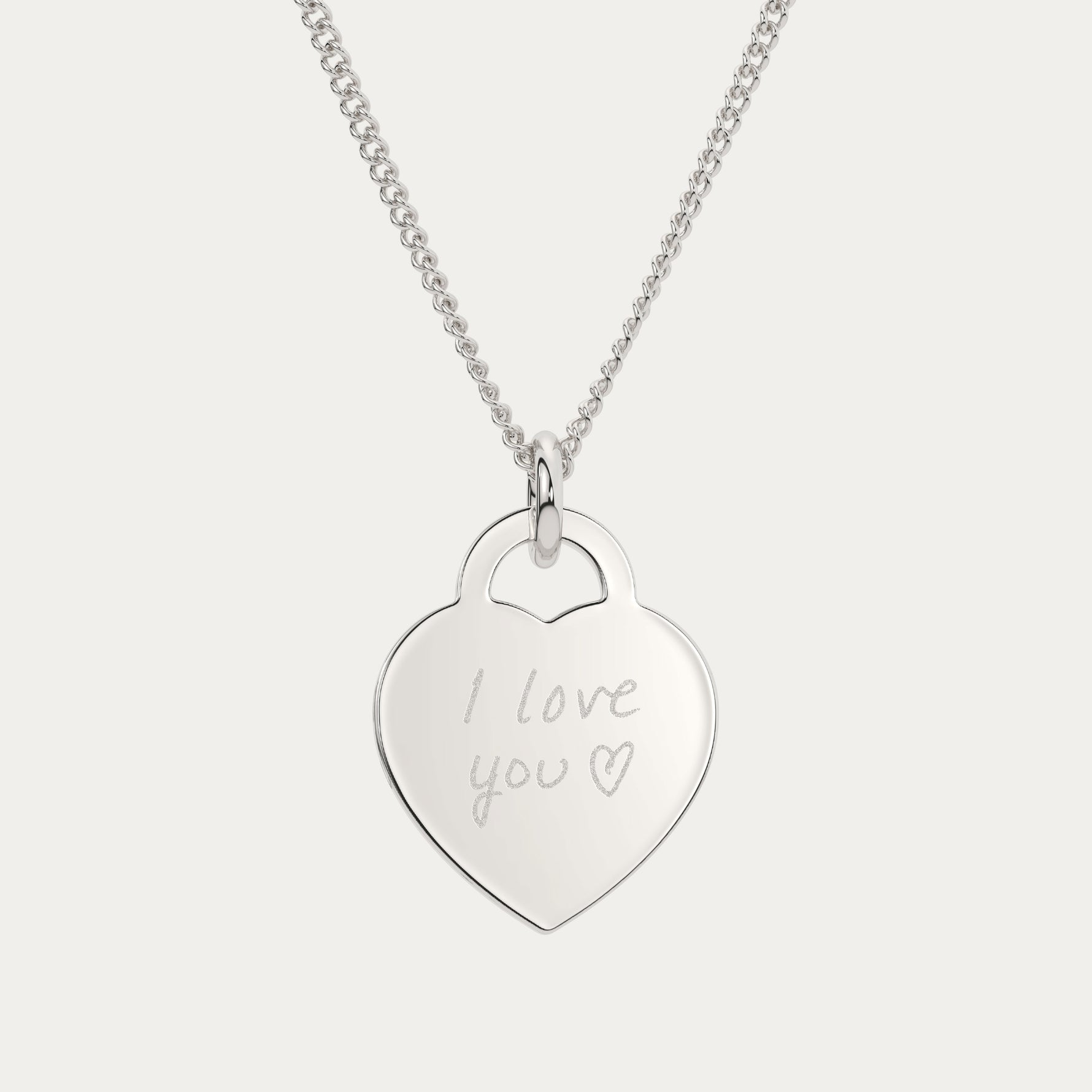 Capture a treasured memory with our Handwriting Engraved Heart Necklace — A timeless keepsake designed to hold a personal message close to your heart. Each pendant is carefully engraved with the actual handwriting of your loved one, making it a truly unique and meaningful piece. Whether it's a signature, a special note, or a simple "I love you," this necklace preserves the emotion behind every word. Thoughtfully crafted with waterproof and hypoallergenic materials, it is perfect for birthdays, anniversaries, memorial gifts, or special occasions.