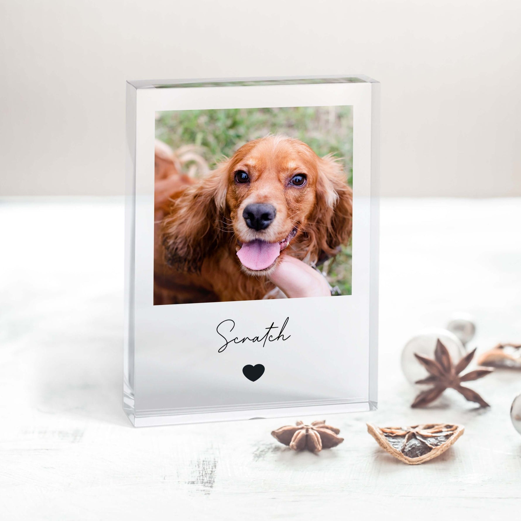 A beautiful free standing acrylic block personalised with your own photo of a beloved pet.