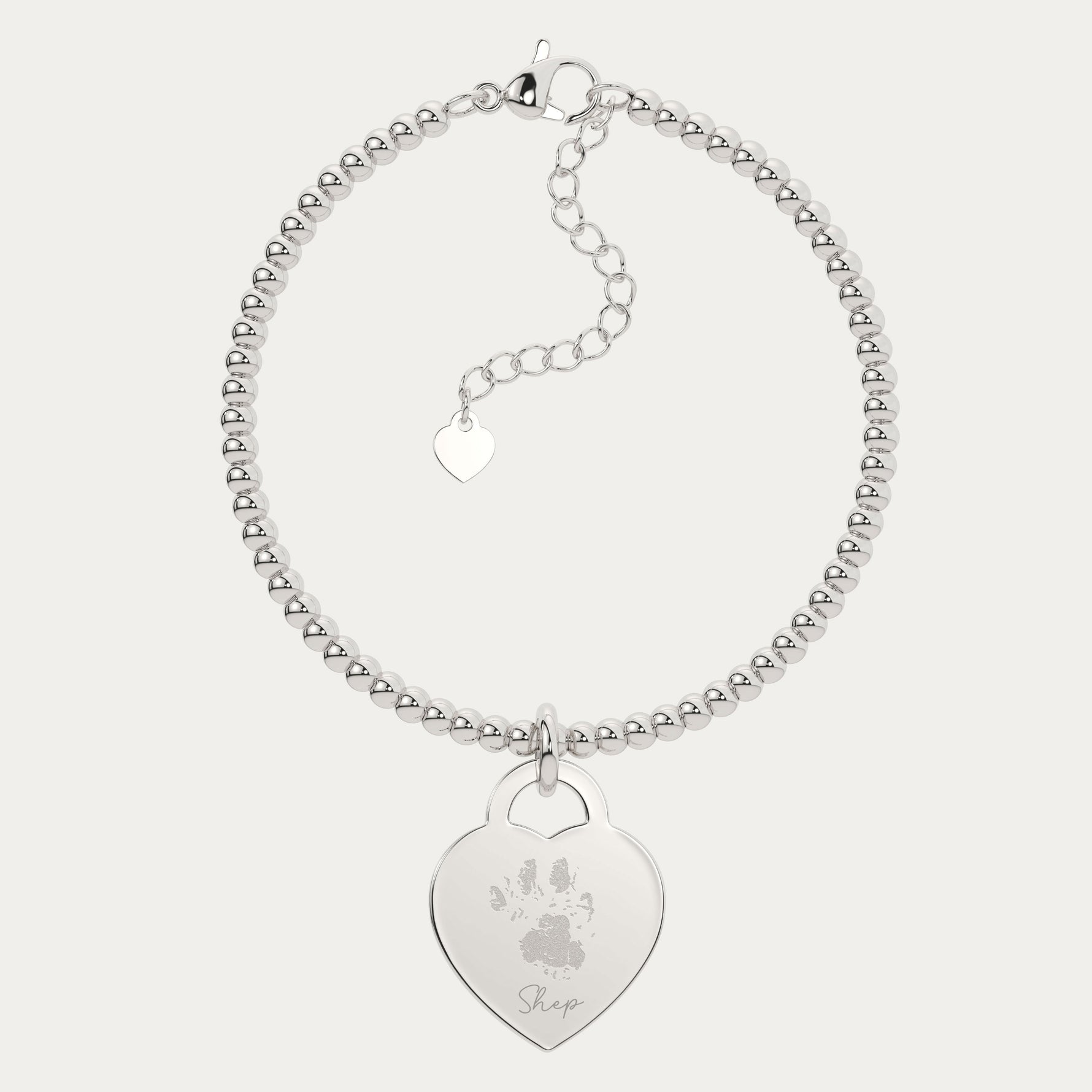 Lucy Heart Silver Paw Print / Nose Print Bead Bracelet