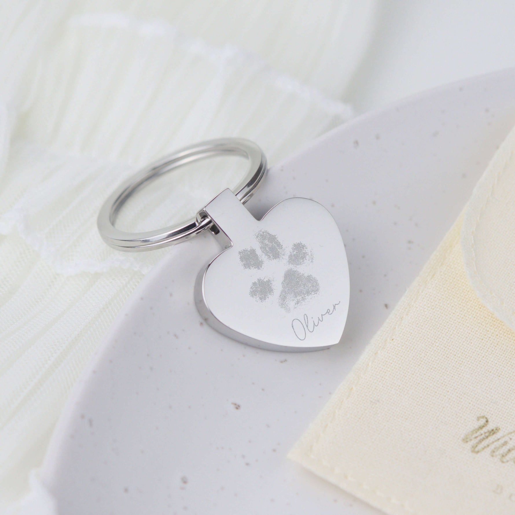 Keep their paw prints close to your heart. Our Paw Print Engraved Heart Keyring is a heartfelt tribute to the unconditional love shared with a beloved pet. Each keyring is custom engraved with your pet’s actual paw print and their name, creating a beautiful, lasting reminder of the bond you’ll always treasure. Whether celebrating a furry best friend or honouring their memory, this piece is crafted to be a timeless keepsake. Made from waterproof, hypoallergenic materials, it’s perfect for everyday use and sentimental gifting.