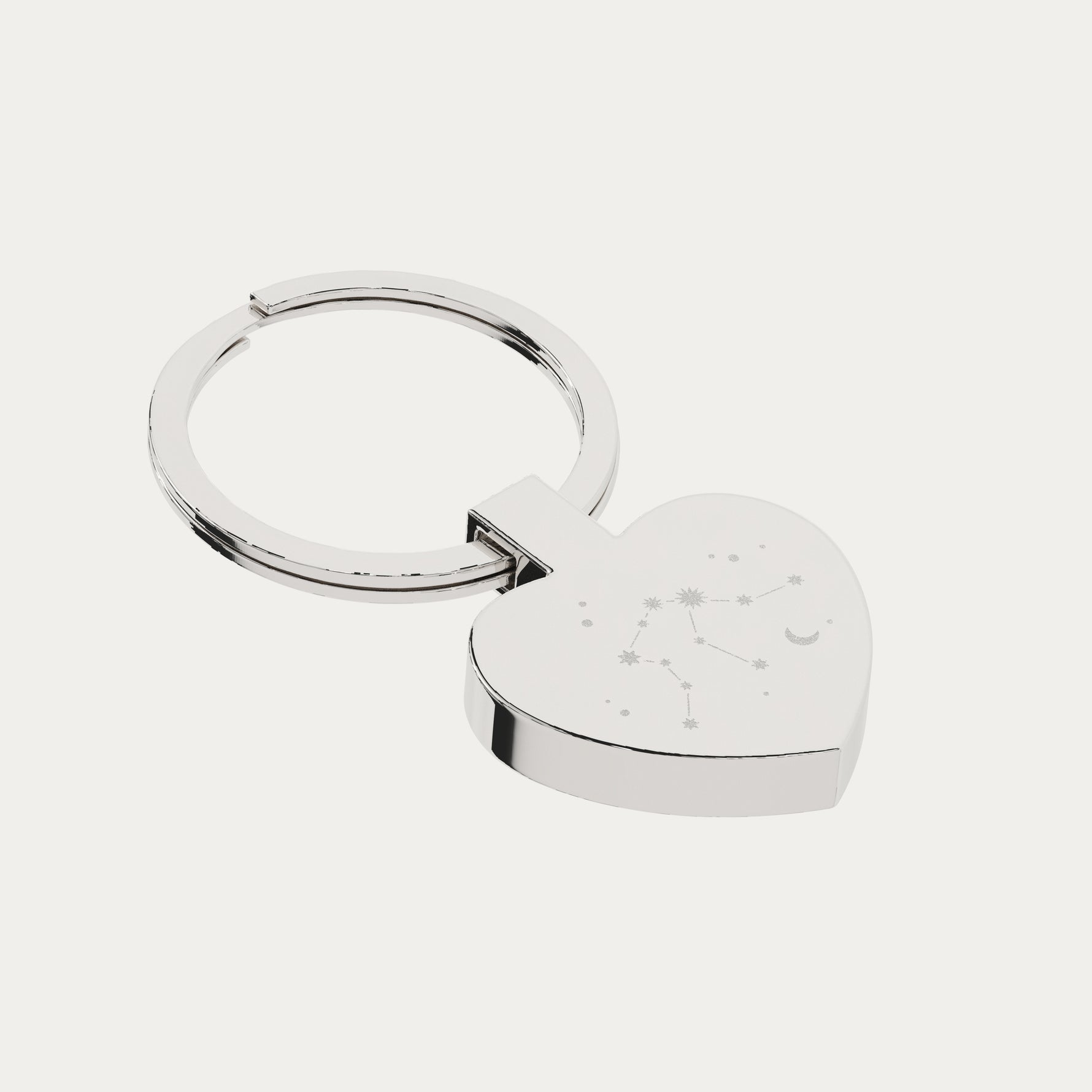 This beautiful heart shaped keyring offers you the chance to personalise it with your own zodiac constellation.