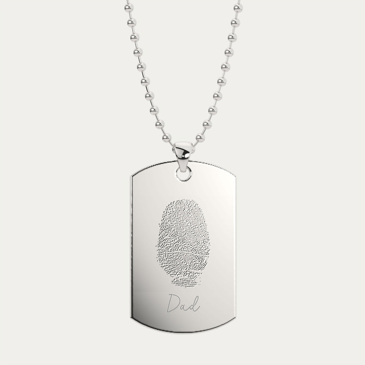 Hold them close, always. Our Fingerprint Engraved Dog Tag Necklace is a deeply personal keepsake that captures the unique touch of someone special. Each dog tag is precisely engraved with a real fingerprint, creating a one-of-a-kind piece that embodies presence, memory, and love. Whether it's a gift to commemorate a loved one, a memorial, or a meaningful gesture for a partner or parent, this necklace transforms a simple impression into a timeless treasure. Made from waterproof, hypoallergenic materials, it's designed for everyday wear and lasting sentiment.