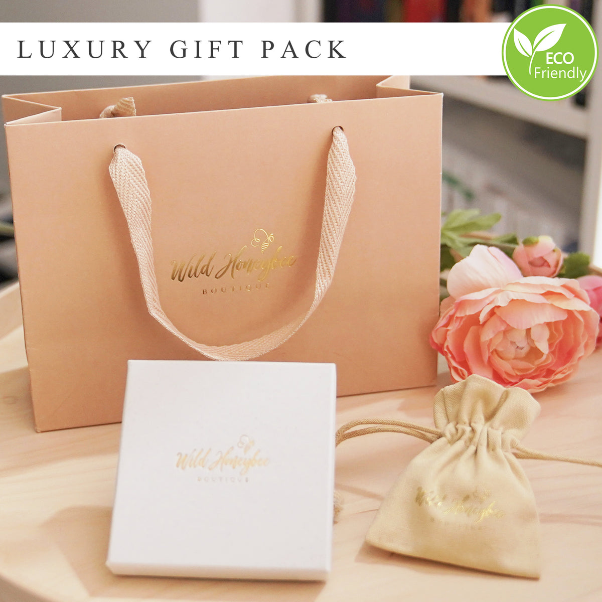 Each necklace comes beautifully packaged in a premium gift box, ready for giving. You can also add a gift bag and protective pouch for just £3.99.