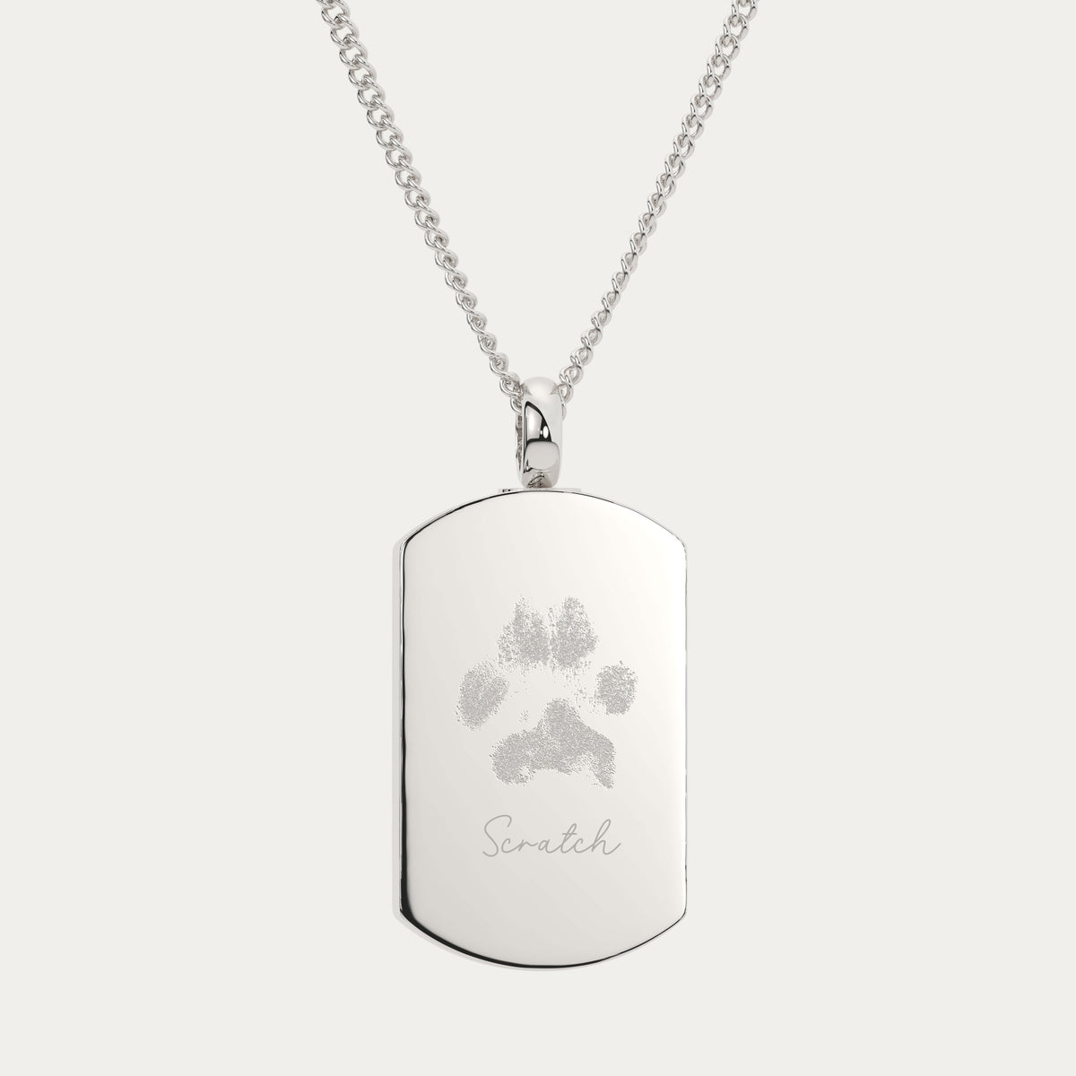 Keep their paw prints close to your heart. Our Paw Print Engraved Dog Tag Urn is a heartfelt tribute to the unconditional love shared with a beloved pet. Each tag is custom engraved with your pet’s actual paw print and their name, creating a beautiful, lasting reminder of the bond you’ll always treasure. Whether celebrating a furry best friend or honouring their memory, this piece is crafted to be a timeless keepsake. Made from waterproof, hypoallergenic materials, it’s perfect for everyday wear and sentimental gifting.